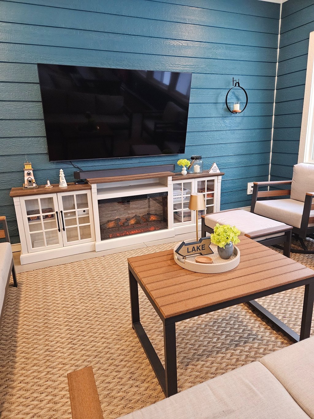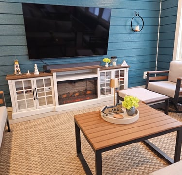Great Room with fireplace and smart TV