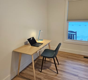Office with Desk & Chair, separated from the main area by sliding barn doors