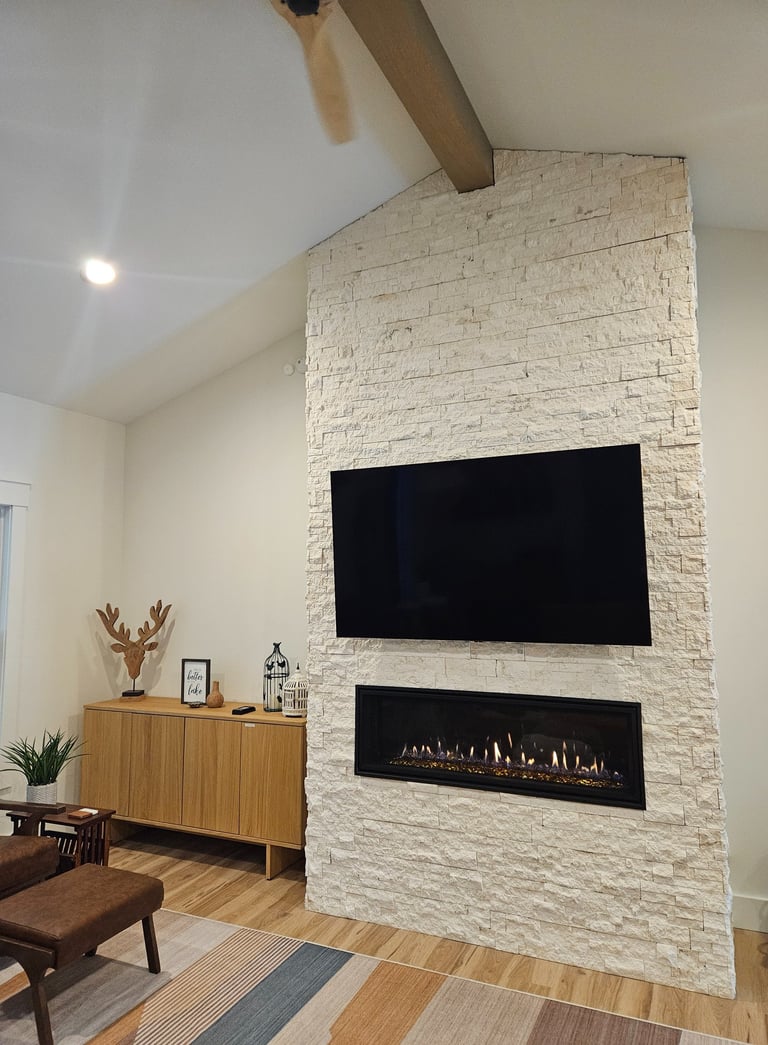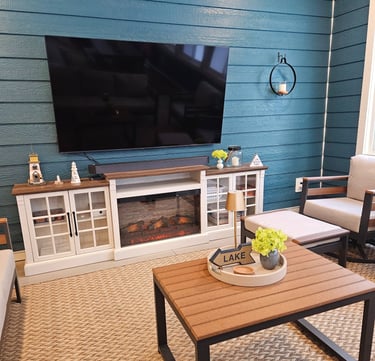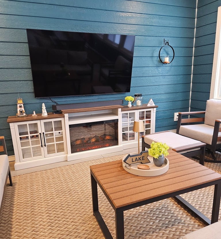Great Room with fireplace and smart TV
