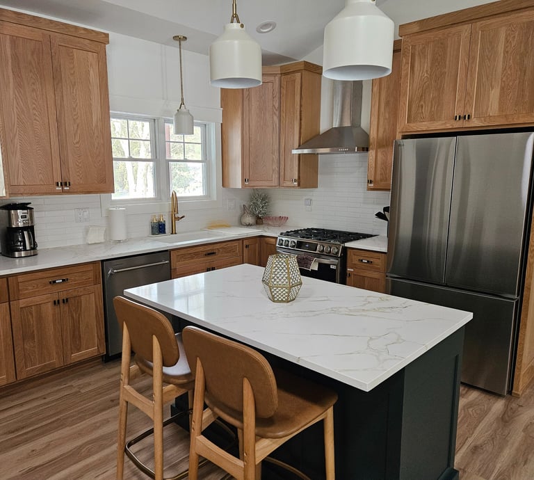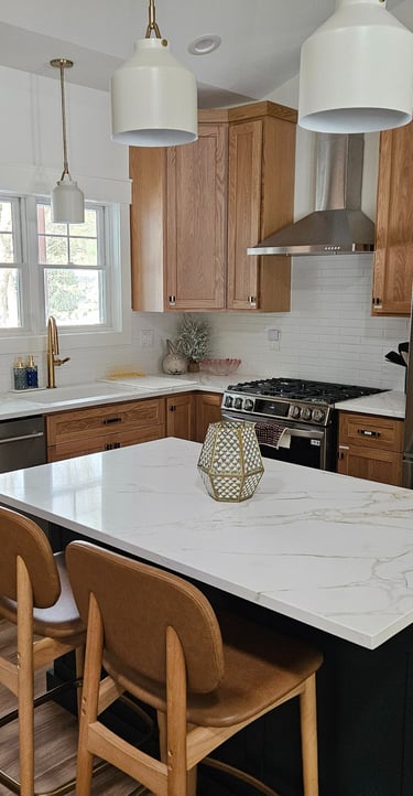 Island with large bar stools